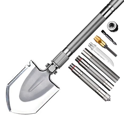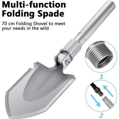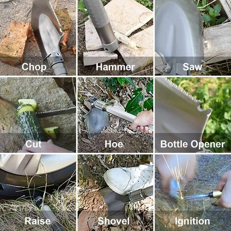 【Spécifications du produit】: Matériau: acier au manganèse et alliage d’aluminium Longueur totale: 77cm Poids: 2,3 lb (1.04 kg)【Convient pour】: -Déplacer la neige, de sable, de gravier et de matières en vrac. -Des tâches telles que creuser, martelage et corde coupe manuel d’entretien. -Déneigement de sous les pneus de votre voiture ou bois de chauffage à découper pour garder le feu qui brûle dans la nuit froide un frosty. -Creuser dans confiné domaines tels que les trous profonds et des fossés. -Avec un marteau amovible, on peut facilement se casser de verre et peut servir aussi comme un équipement si on est en danger. -Pliage bêche pelle, combiner librement la poignée, avec souplesse modifier la longueur et la fonction. -Cette pelle à neige pliable est léger et compact. Également idéal pour les excursions en plein air. 【Emballage Inclus】: 1 x Bêche pliante multifonctionnelle 1 x Sac