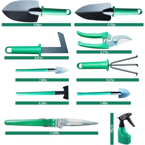 BAICCCF Kit Outils Du Jardinier 11 Outils De Jardinage En Acier Inoxydable Kit D’outils De Jardin Cadeaux Pour Hommes Et Femmes (Vert)