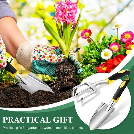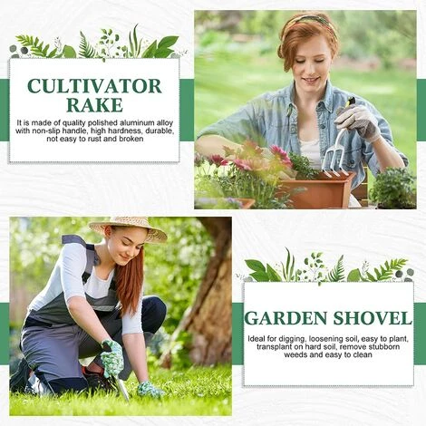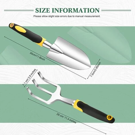Ensembles d’outils de jardin : vous recevrez 1 pelle de jardin et 1 râteau de cultivateur ; L’épaisseur du corps de la griffe est de 7 mm avec une structure plus robuste, de sorte qu’elle résiste à la casse ; Idéal pour creuser, ameublir le sol, nettoyer les déchets, enlever les mauvaises herbes ou mélanger le sol avec de l’engrais Informations sur la taille : la pelle à main mesure 30 cm/ 11,8 pouces de longueur et 7,5 cm/ 2,95 pouces de largeur, le râteau du cultivateur mesure 29 cm/ 11,4 pouces Longueur et 7,1 cm/ 2,8 pouces de largeur, la grande tête déplace plus de sol pour accélérer le travail, le poids est léger, et plus économe en main-d’œuvre et pratique à utiliser Robuste : l’ensemble d’outils de jardin est fabriqué en alliage d’aluminium poli de qualité avec poignée antidérapante, haute dureté, pas facile à rouiller et à casser, facile à creuser, planter, transplanter sur un sol dur, enlever les mauvaises herbes tenaces et facile à nettoyerPoignée confortable: la poignée de la truelle de jardin est en caoutchouc de qualité, confortable et antidérapant, réduit main et moins pour la fatigue du poignet lors du désherbage, plus d’économie de travail et plus confortable dans la prise en main et l’utilisation à long terme, et dispose d’un trou de suspension pour un rangement pratique Cadeau pratique : ensemble traditionnel conçu pour durer, la pointe de la pelle est lisse sans bavure ni coin, don ce n’est pas grave y de se blesser ; Idéal pour une variété de tâches, y compris creuser, repiquer, tailler, ameublir le sol, planter, désherber et plus encore ; Cadeaux pratiques pour jardiniers, femmes, hommes, enfants, parents