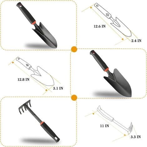 ENSEMBLE D’OUTILS DE JARDIN : Comprend une pelle fine, une pelle large et un râteau à cinq dents. Idéal pour une variété de tâches, y compris l’élagage, le creusement, le désherbage, le desserrage du sol, l’aération, le repiquage, etc. Un trou de suspension pratique pour la poignée est facile à ranger. HAUTE QUALITÉ: Haute dureté, durable, pas facile à rouiller et à casser. Antirouille, très solide et facile à nettoyer. Idéal pour le jardinage. CADEAU PARFAIT : les outils de jardinage sont durables, de haute qualité et d’une belle apparence. Ils sont le cadeau parfait pour l’amour du jardinage et le cadeau idéal pour les parents, la famille, les amis et les collègues respectés. ACHETEZ EN TOUTE CONFIANCE : Si vous avez des questions, veuillez nous contacter.