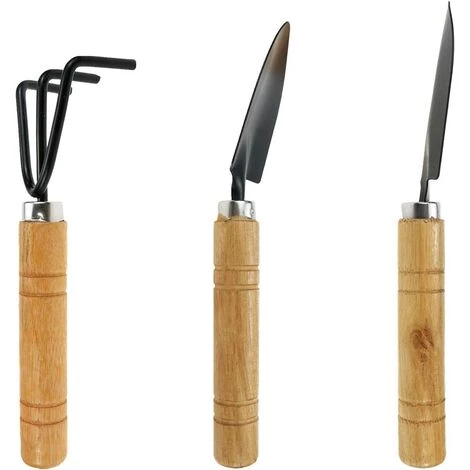 Ensemble de mini pelles à main de jardin traditionnelles. Têtes en fonte avec poignée en bois. 1 mini truelle à main : travaux de creusement comme la plantation, la transplantation, le labourage du sol et plus encore 1 x mini truelle de transplantation : parfaite pour la transplantation de petites plantes et fleurs 1 x mini râteau à main : briser le sol, nettoyer les déchets, Enlevez les mauvaises herbes et mélangez le sol avec de l’engrais. Durable et beau, le mini outil de jardin 3 pièces est un cadeau parfait pour l’amour du jardinage, le cadeau idéal pour les proches, la famille, les amis et les collègues respectés.