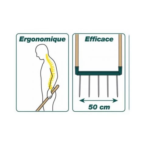 - Outils pour le jardinage naturel ; décompacte la terre sans la retourner et préserve ainsi l’organisation des micro-organismes vivants dans le sol