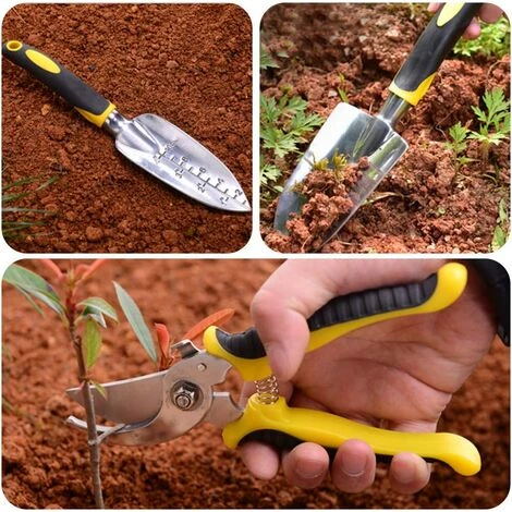 - Ensemble Outils Jardinage: L’ensemble comprend un sécateur, une pelles truelle, un transplanteur (avec unités « cm ») Convient pour creuser, désherber, ameublir le sol, ventiler, repiquer, etc. Bel ensemble d’outils de jardinage pour un petit jardin.