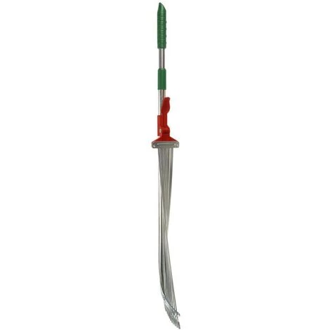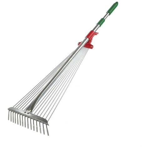 Un râteau pratique en métal léger avec 15 dents plates en acier pliées ! Grâce à la largeur de travail réglable en continu, le travail entre des groupes de plantes à faible hauteur ne pose aucun problème. Lorsqu’il est poussé, le râteau ne mesure que 80 cm de long et peut donc être facilement transporté et stocké.