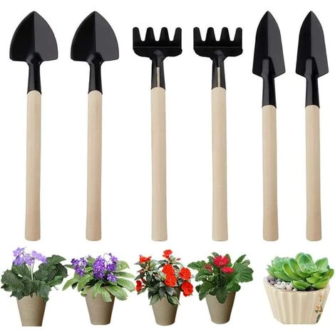 6 pièces d’outils de jardin comprenant de jardinage pelle, râteau et truelle, durable et de qualité supérieure pour une valeur. Les poignées en bois sont conçues pour être légères, confortables et faciles à tenir, offrant une expérience de jardinage la plus confortable.