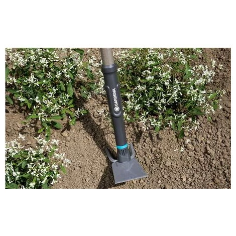 La tête en acier haute qualité enduit du serfouette NatureLine GARDENA permet de travailler facilement la terre.