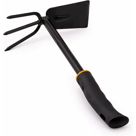 Double binette pour les petits travaux de jardinage: la binette double est fabriquée en acier au carbone de haute qualité. Elle dispose d’une poignée profilée ergonomique et rembourrée avec une ouverture pour l’accrocher. Convient aux droitiers et gauchers.