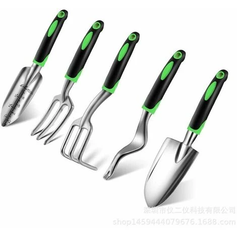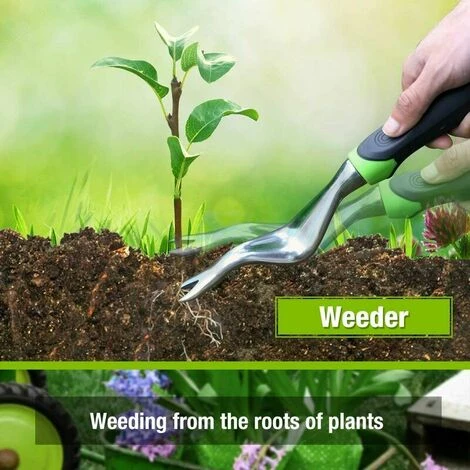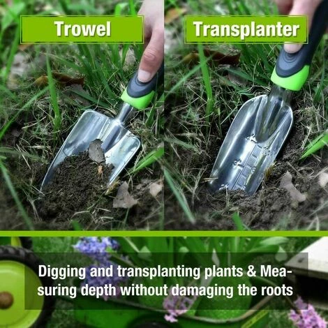 【Patique et variété riche】Ce lot comprend 5 outils de jardinage qui sont utilisés le plus souvant, 1* fourche(31.7*8cm), 1* sarcloir(32.8*3.8cm), 1* griffe(32*9.8cm), 1* transplantoir(32.5*5.5cm), 1* pelle à terreau(32.5*7.4cm), ils peuvent résister aux racines et sols les plus durs dans le jardinage extérieur