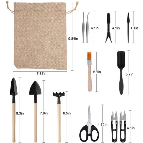 L’ensemble d’outils de plantation de jardin 13 PCS résoudra vos problèmes de transplantation tels que le creusement, l’ameublissement du sol, la transplantation, la taille, le nettoyage, etc. Il comprend 1 x ciseaux, 2 x coupe-feuilles, 1 x brosse, 2 x pinces, 1 x mini râteau, 2 x pelles, 3 x outils de transplantation, 1 x sac de rangement.