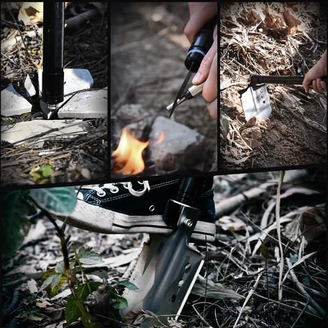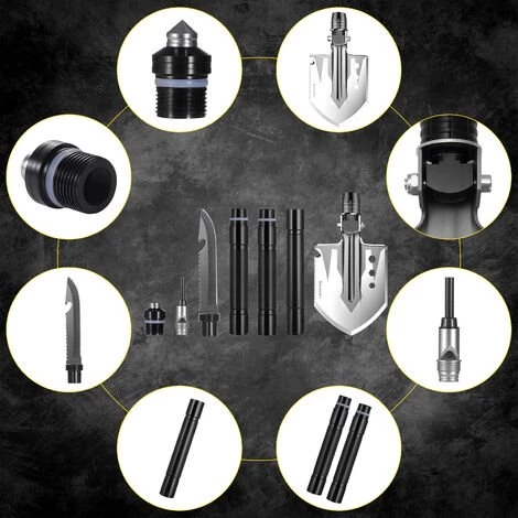 La pelle et la hache multifonctionnelles qui sauvent des vies sont fabriquées en alliage d’aluminium de haute qualité et en acier inoxydable 3CR13. Lames renforcées, solides, durables, super solides et antirouille. Grâce à la conception du verrou rotatif à 180°, notre pelle pliante peut être librement commutée en crochet (45°), tête électrique (90°) et pelle (180°).