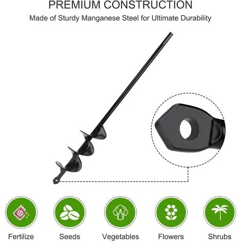 - ?Matériau de haute qualité? Fabriqué en acier robuste, durable à utiliser. Avec une finition peinte en noir brillant, le grand foret de cultivateur ne rouille pas facilement.
