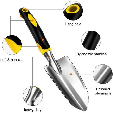 Les outils de jardin sont pratiques à utiliser. Simplifiez votre vie et travaillez avec plaisir. Meilleur ami pour votre jardinage et plantation. Kit d’outils de jardinage idéal pour le jardinage et la plantation. Ne jamais casser ou plier facilement. Design pratique : le design pratique des trous de suspension pour les poignées est facile à ranger. La poignée antidérapante Soft Grip est confortable pour toutes les actions. Contenu : 1 x râteau manuel : 35,5 x 4,5 cm. 1 fourche de désherbage : 25,4 x 2,76 cm. 1 x Weeder : 38,5 x 3,5 cm. 1 louche : 11,8 x 2,95″. 1 truelle de plantation : 30 x 5 cm. Remarque : Veuillez nettoyer et sécher les outils de jardin après utilisation.