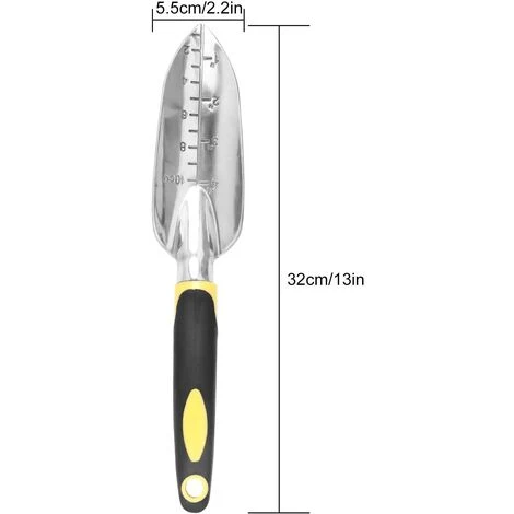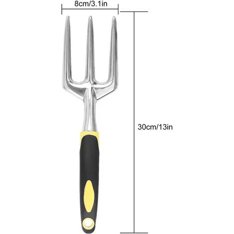 Kit d’outils de jardin 3 pièces d’outils de jardinage en aluminium Caractéristiques Les outils de jardinage sont fabriqués à partir d’un alliage d’aluminium robuste, les poignées ergonomiques et confortables sont douces pour la main. Le kit d’outils de jardin est très léger et durable, travaille pendant de longues heures sans se sentir fatigué, convient aux plus âgés et aux enfants. Contenu de l’emballage 1 x Fourche de Désherbage: 13 x 3.1inch 1 x Truelle à Main: 12 x 3 inch 1 x Truelle de Repiqueuse: 13 x 2.2 inch Conseils Chaleureux S’il vous plaît verrouiller les lames de cisailles après utilisation et le stocker dans un endroit hors de portée pour les enfants. Nettoyez et séchez toujours les outils de jardinage après chaque utilisation.