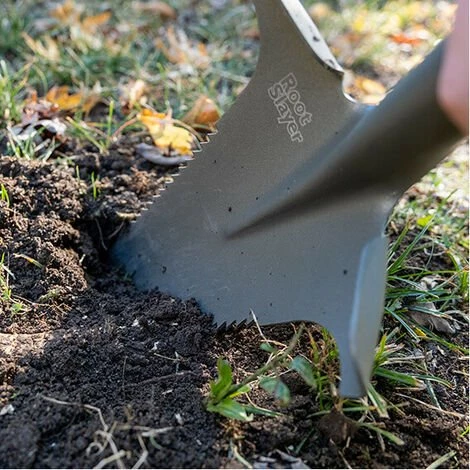 Léger et polyvalent : multifonction de qualité professionnelle.Tête en V : tranchante, elle vous permet d’effectuer plusieurs travaux dans votre jardin en un coup de main.Facile d’utilisation : efficace contre la terre sèche ou dure sans aucun effort, ce transplantoir est puissant et net.Outil de jardin : un outil qui vous sera indispensable pour bêcher, transplanter, arracher les racines et bien plus.Poignée : sa poignée 360° est ambidextre et confortable.Avec cet outil de jardin, confortable et léger, vous pourrez travailler sur de petits espaces. Ce petit outil est révolutionnaire avec son design breveté. Le ROOTSLAYER MINI DIGGER™ est un outil multifonction confortable avec un manche 360° en fibre de verre pultrudée, légère et durable. Il est semblable à notre ROOTSLAYER™, mais il est plus petit et plus léger.Idéal pour les activités outdoor tel qu’au camping, pêche ou bien la chasse, séjour de l’extrême …Avec sa tête en V d’acier de carbone affûtée, rien ne lui échappe : racines, bordures,…