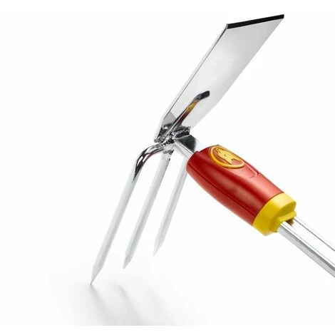 – Outil double fonction : sa panne désherbe, ses dents ameublissent et décroûtent la terre en profondeur