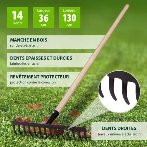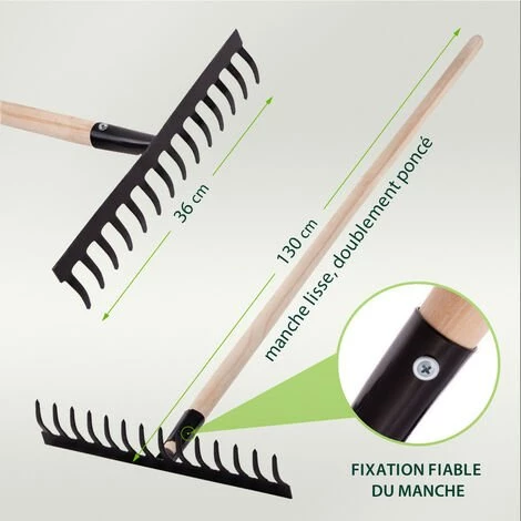 Le râteau SIBRTECH à dents droites est conçu pour le travail de sols mous et moyens. Il dispose d’une partie travaillante en acier (traitée contre la corrosion) assurant résistance et efficacité lors de l’utilisation pour des travaux de jardinage, etc.