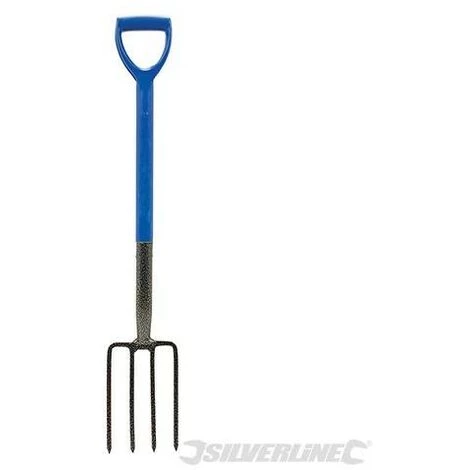 Dents en acier trempé et revenu pour meilleure durabilité. Finition martelée à revêtement époxy. Manche en acier à revêtement polypropylène avec poignée en D. Pour creuser, bêcher et planter. Dimensions tête (L x l) : 230 x 140 mm.