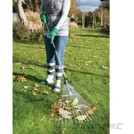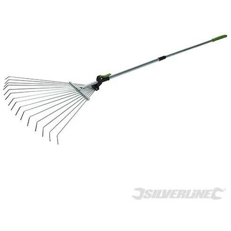 Râteau télescopique réglable en acier à 15 dents. Manche télescopique en acier zingué avec prise confortable et trou de suspension. La largeur de tête peut être réglée en fonction de la tâche à réaliser: plus large pour balayer les feuilles mortes ou moins large pour intervenir sur platebandes ou bordures. Manche télescopique pouvant se rallonger de 800 à 1 500 mm. Compact et léger. Dimensions tête L x l : 470 x 630 mm.