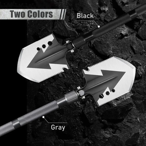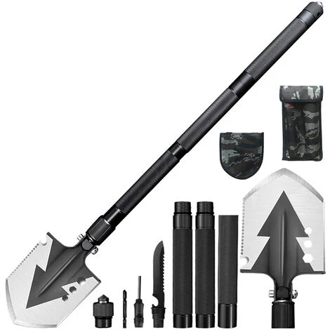 Les produits comprennent une tête de pelle, une tige d’extension à 3 sections, un couteau de poche, un tournevis, un cône de sécurité, un sac à tête de pelle en tissu camouflage et un sac à poignée. Convient pour le camping, la randonnée, la randonnée, le tout-terrain, la pêche, la survie, les urgences, la chasse, le jardinage, etc.