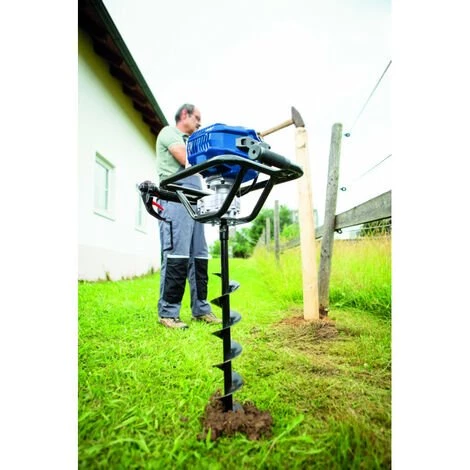 Tarière Thermique SCHEPPACH – 1,77CV – EB1700, peut être utilisée pour effectuer de nombreux travaux différents, pour planter des piquets de clôture ou pour planter des haies et des arbres.
